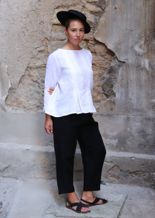 The classic trousers : rather wide shape, elastic waist, more narrow at the ankle, length : ankle
