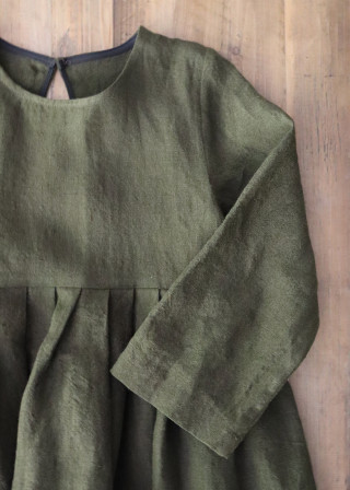 Pleated dress, long sleeves, light stripes linen €130.00 SEE ALL THE LONG-SLEEVED PLEATED DRESSES FOR KIDS