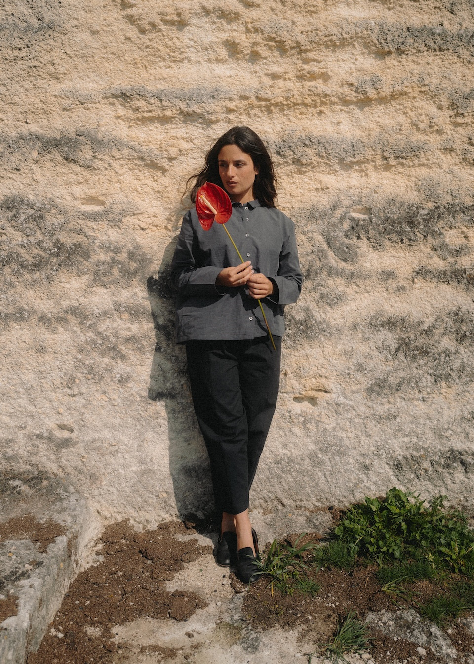 A loose and simple shirt, not too long, ideal for everyday life. In some colors, its small collar is contrasted to bring a touch of originality to this very "simple" shirt
