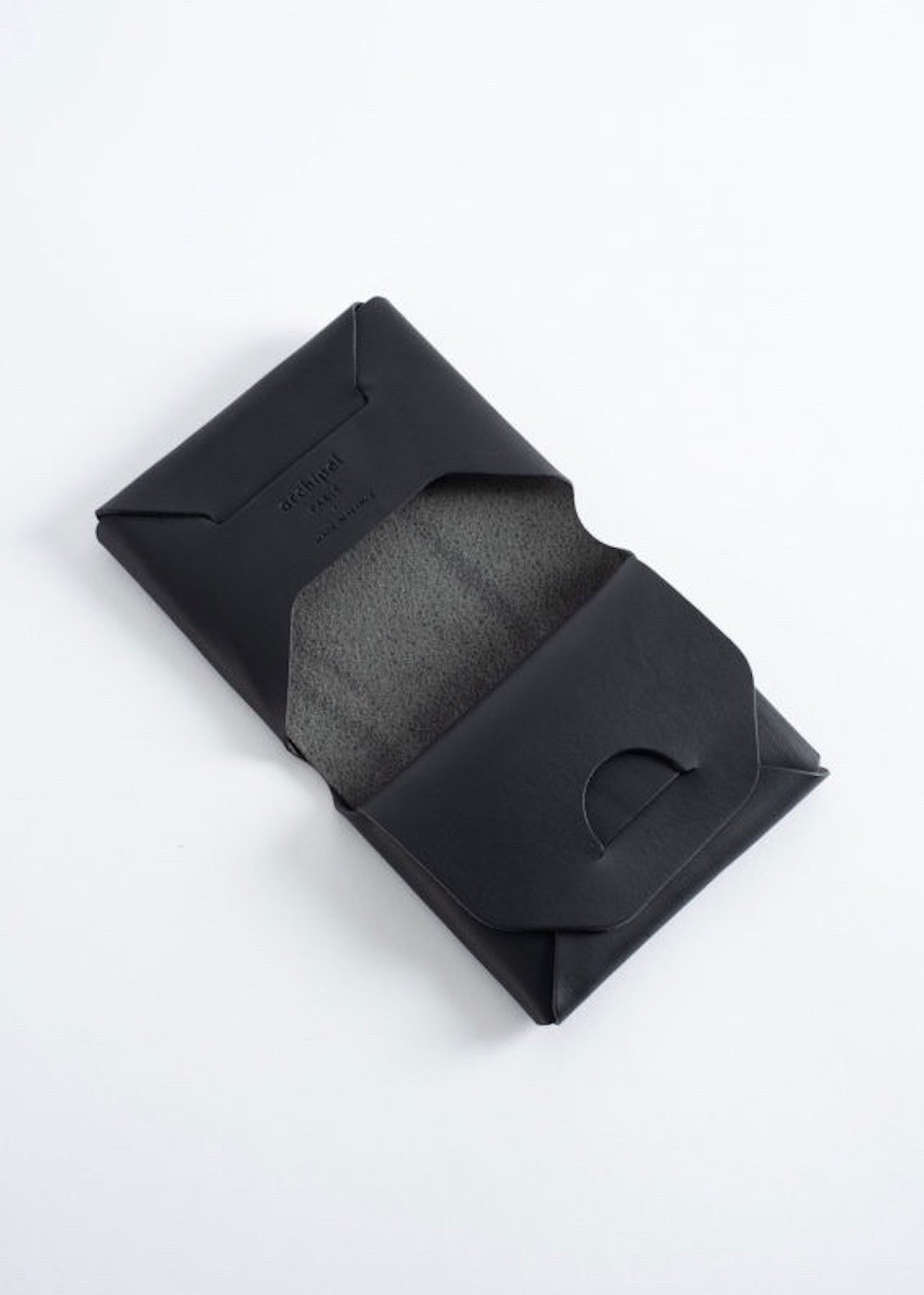 Leather wallet, seamless, assembled using cutting and folding by the Parisian workshop ARCHIPEL.