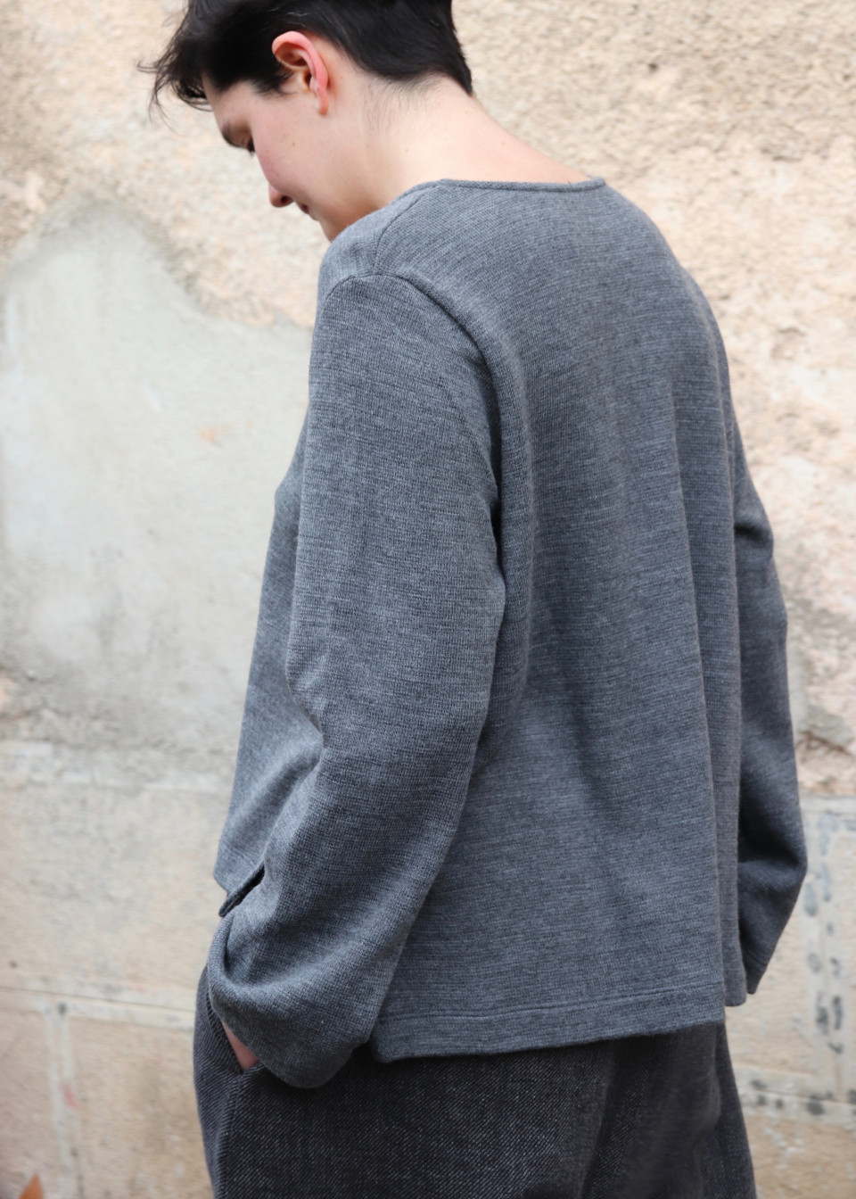 This item is available in several fabrics (linen, silk, wool blend, ...), which give a different shape on the body.