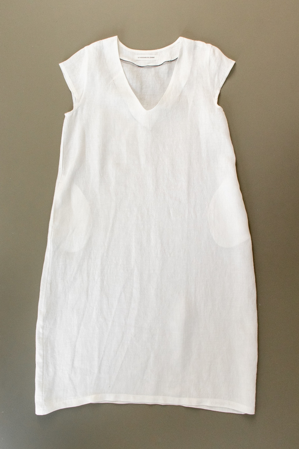 Flared dress, short sleeves, V neck, white linen Flared dress, short sleeves, V neck, white linen Flared dress, short sleeves, V neck, white linen Flared dress, short sleeves, V neck, white linen Flared dress, short sleeves, V neck, white linen