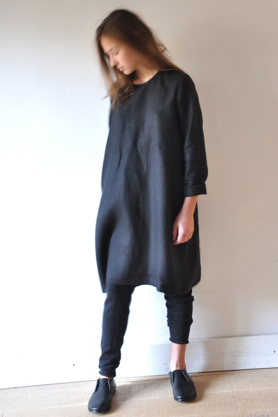 Flared dress, long sleeves, round neck, in black linen Flared dress, long sleeves, round neck, in black linen Flared dress, long sleeves, round neck, in black linen Flared dress, long sleeves, round neck, in black linen Flared dress, long sleeves, round neck, in black linen Flared dress, long sleeves, round neck, in black linen Flared dress, long sleeves, round neck, in black linen