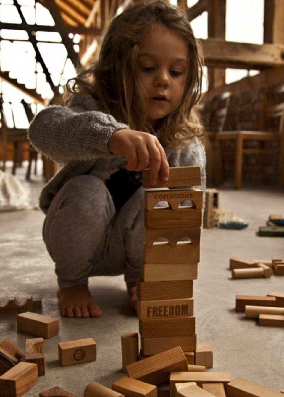 These natural wooden blocks impregnated with beeswax and vegetable oils allow children to play and develop all their senses.