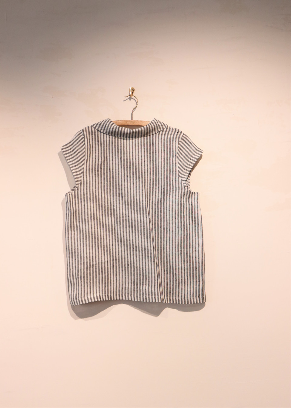 - Chemise droite, manches courtes, col claudine, fermeture sur le devant par de petits boutons en métal.