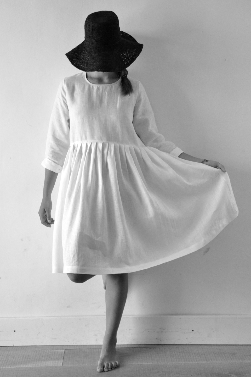 Le lin est un tissu qui garde la forme du vêtement et donne un rendu plutôt droit et décollé du corps.
