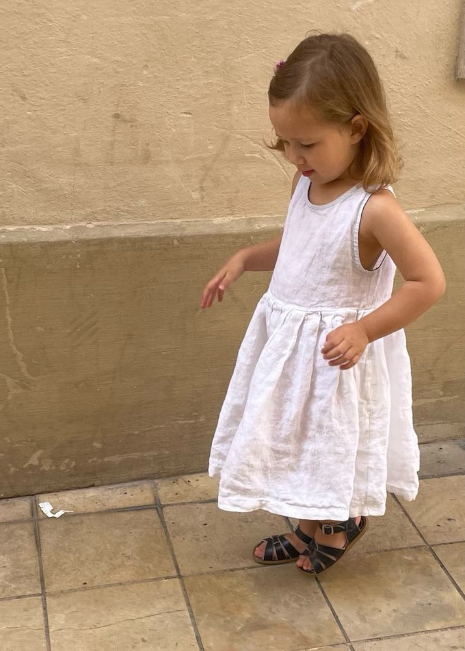 Le lin est un tissu qui garde la forme du vêtement et donne un rendu plutôt droit et décollé du corps.