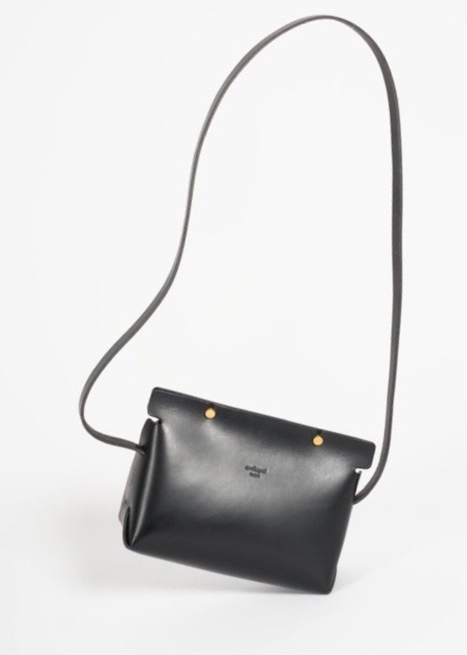 Sac en cuir, sans couture, assemblé grâce à un jeu de découpe et de pliage par l'atelier parisien ARCHIPEL.