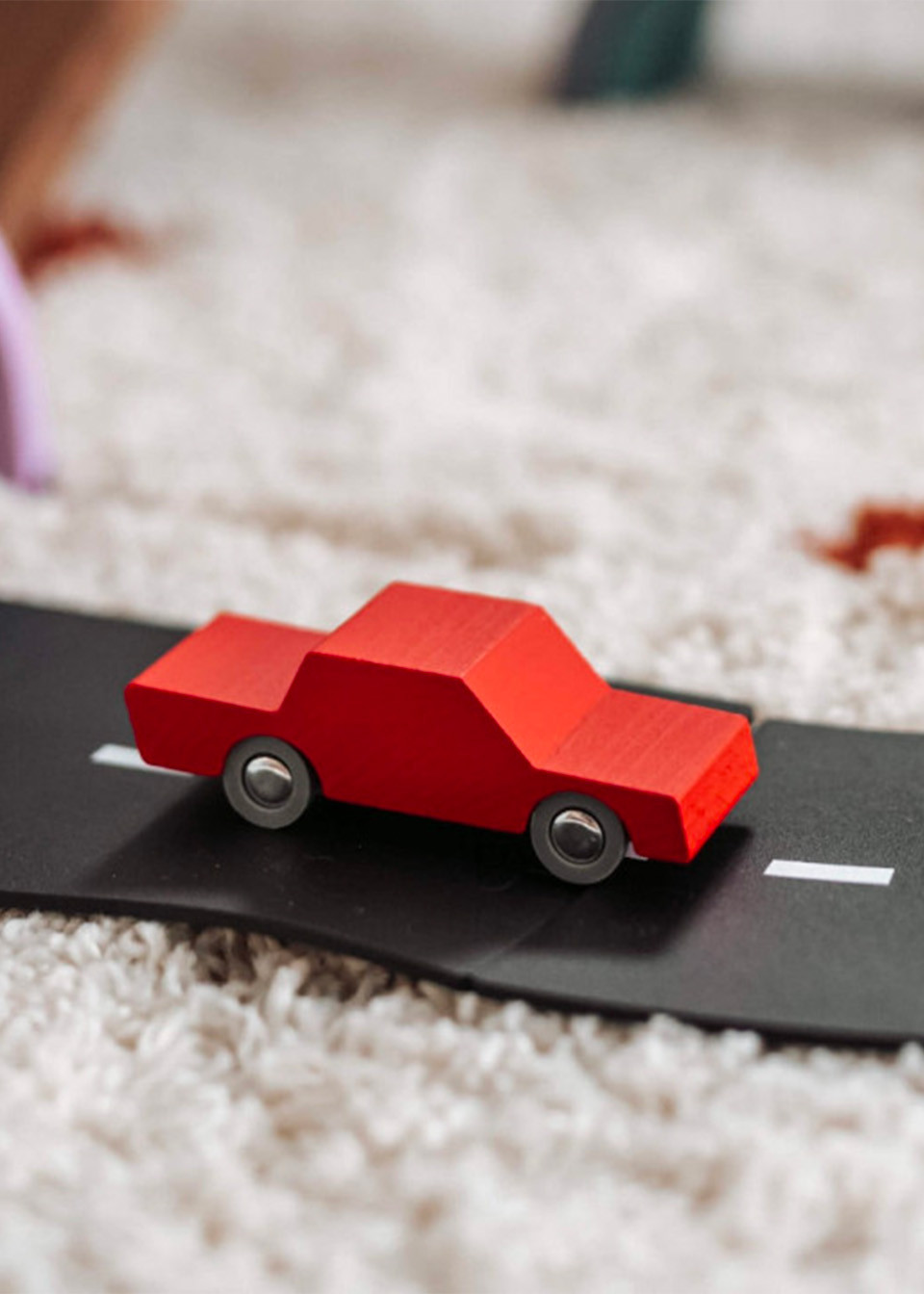Voiture en bois très esthétique, peinte à la main, qui s'intègre parfaitement dans une chambre d'enfant, par Way To Play
